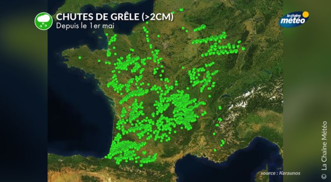 Chutes de grêle depuis le 1er mai en France © La Chaîne Météo