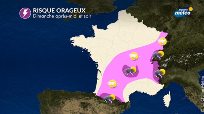 Entre ce dimanche soir et lundi, des orages sont attendus du sud-ouest aux Alpes et au Jura. Même s'ils restent localisés et moins généralisés que ceux de cette semaine, ils pourront néanmoins se montrer virulents localement.