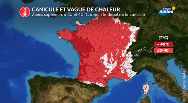 Zones supérieures à 35 et 40°C depuis le début de la canicule © La Chaîne Météo