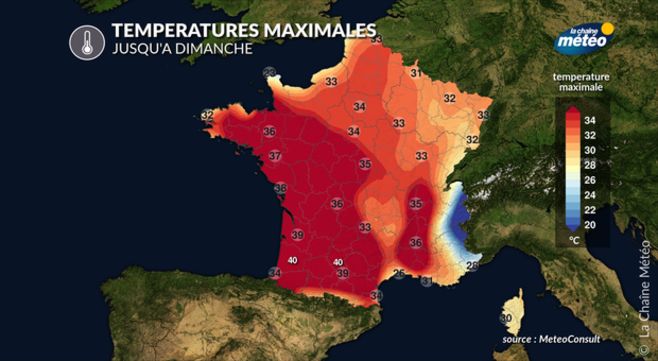 Une canicule est une vague de chaleur au format XXL, c'est-à-dire qui atteint des seuils de température prédéfinis (généralement autour de 20°C la nuit et de 36°C le jour), pendant au moins 3 jours et 3 nuits à la suite. Pour cette semaine, ces seuils sont atteints au sud-est et surtout sur la façade ouest de notre pays. Les régions situées au nord de la Loire et surtout de la Seine pourraient connaître des chaleurs moins intenses en raison de la persistance d'un léger vent de secteur nord-est.