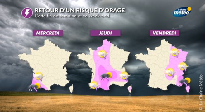 Si des dégradations orageuses s'observeront mercredi soir au sud-ouest puis jeudi sur l'ouest, la journée de vendredi nécessite encore plus de vigilance en raison de l'intensification des orages sur une partie est et surtout sud-est, Si les températures baissent à l’ouest, elles seront encore très élevées à l’est. D’une manière plus générale, l’atmosphère sera lourde, moite et tropicale.