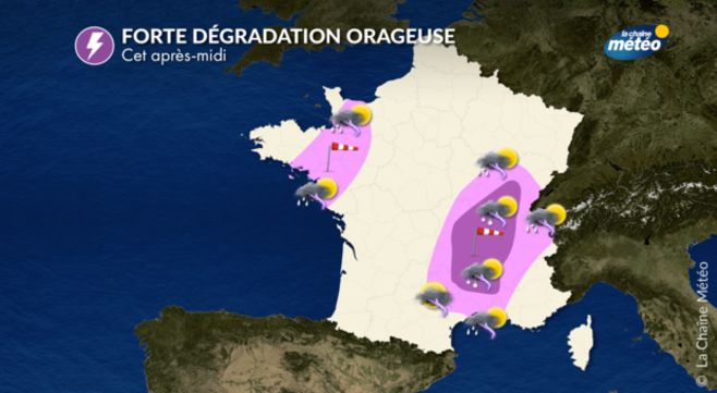 Par ailleurs, les orages se multiplient entre le Massif-Central, le sud de la Bourgogne et le Jura.