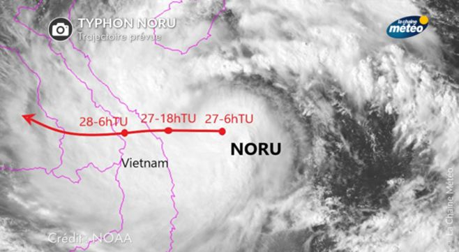 Selon le Joint Typhoon Warning Center d'Hawaï, le super typhon Noru devait se positionner en 6ème position des typhons les plus puissants à toucher le Vietnam depuis 1945. Il s'est finalement affaibli en approchant la côte vietnamienne en étant rétrogradé en catégorie 2. Néanmoins, les vents ont soufflé entre 120 et 160 km/h à son arrivée sur la côte vietnamienne la nuit dernière, touchant principalement la région de Da Nang.