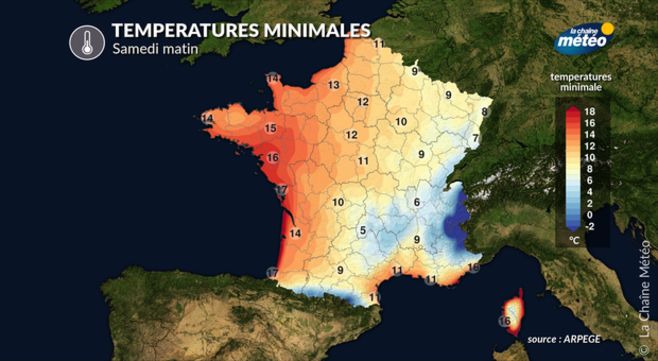 - des températures matinales très douces à l'ouest, contrastant avec ces 10 derniers jours !