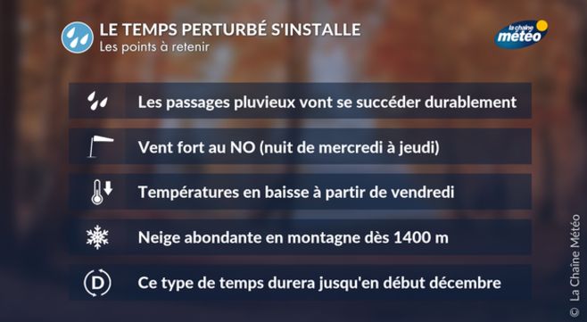 Le retour des perturbations est désormais en place sur la France. Pluie et vent se succèdent, avec le retour attendu de la neige en montagne. Cette situation perturbée s'annonce durable.