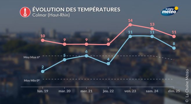 En raison du retour du régime atlantique et d'un vent de sud-ouest, c'en sera fini des gelées en plaine avec 4 à 10°C au lever du jour. L'après-midi, les maximales afficheront de 11 à 12°C au nord et 13 à 15°C au sud. Nous nous situerons 3 à 4°C au-dessus des normales.