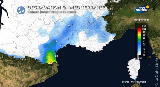 Cumuls de pluie au sud-est © La Chaîne Météo