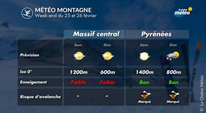 La dernière semaine des vacances de la zone C (Paris, Créteil, Montpellier, Toulouse et Versailles) commence ce week-end. La neige continue de faire défaut dans grands nombres de stations, en dessous de 1500 à 1800 m, alors que les Pyrénées ont renouvelé avec la neige cette semaine. Si le grand froid reviendra la semaine prochaine, la neige ne concernera que le sud des Alpes et les Pyrénées principalement.