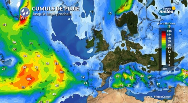 Un puissant anticyclone reste scotché sur les îles britanniques tandis que des dépressions concernent la Méditerranée. En conséquence, il ne faut pas attendre l'arrivée de nouvelles pluies avant la semaine prochaine, hormis dans l'extrême sud-est, surtout en Corse.