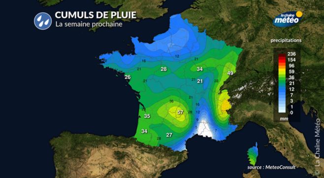 Cumuls de pluie possibles la semaine prochaine © La Chaîne Météo