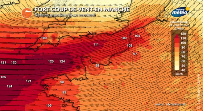 Pour l'Ile-de-France et les Hauts-de-France, la pluie tombe avec un vent très fort en début de matinée : si vous circulez en voiture pour aller au travail, par exemple, vous serez sans doute un peu géné. Le vent est plus violent près des côtes, mais les rafales atteignent également 80 à 90 km/h dans les terres, ce qui n'est pas anodin. Après la pluie du matin, une succession d'averses parfois orageuses se produira toute la journée. Les vents faibliront graduellement en fin d'après-midi et soirée.