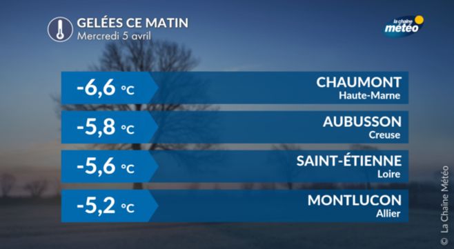 Météo du mercredi 5 avril : nombreuses gelées ce matin