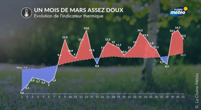 Evolution des températures en mars 2023 © La Chaîne Météo