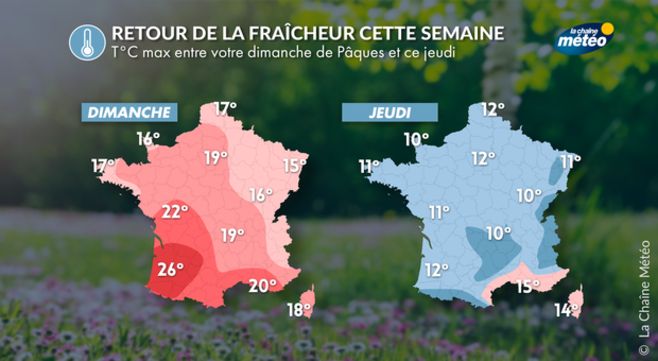 Les températures accuseront une baisse de 5°C par rapport à mardi, repassant sous les moyennes de saison.