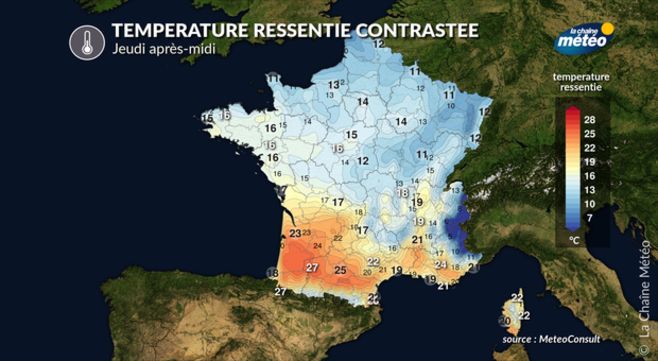 Températures ressenties jeudi après-midi © La Chaîne Météo