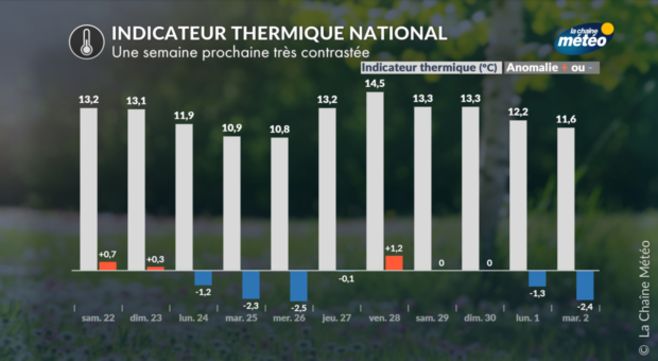 Indicateur thermique jusqu'en début mai © La Chaîne Météo