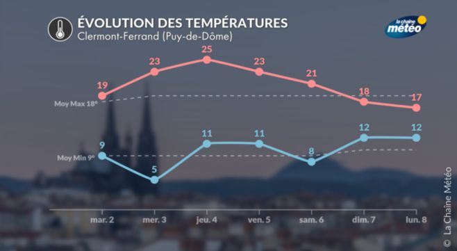 L'anticyclone présent lundi sur le golfe de Gascogne remonte vers les îles britanniques mardi avant de se décaler vers l'Allemagne. Avec un vent qui s'oriente à l'est mardi puis au sud mercredi, c'est de l'air de plus en plus doux qui s'impose dans une ambiance qui devient lourde et même orageuse jeudi et vendredi au nord.