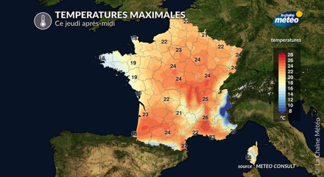 Températures maximales prévues ce jeudi © La Chaîne Météo