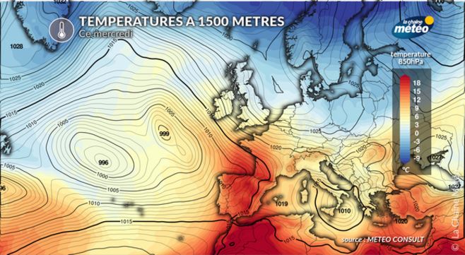 TEMPERATURES MAXIMALES A 1500M PREVUES CE MERCREDI © La Chaîne Météo