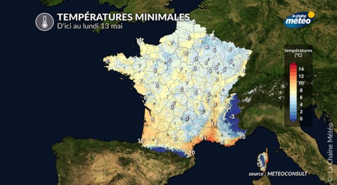 Températures minimales d'ici au lundi 13 mai © La Chaîne Météo