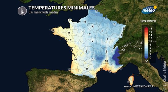 Températures minimales ce mercredi © La Chaîne Météo