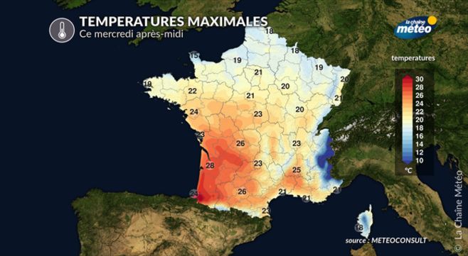 Températures maximales mercredi après-midi © La Chaîne Météo