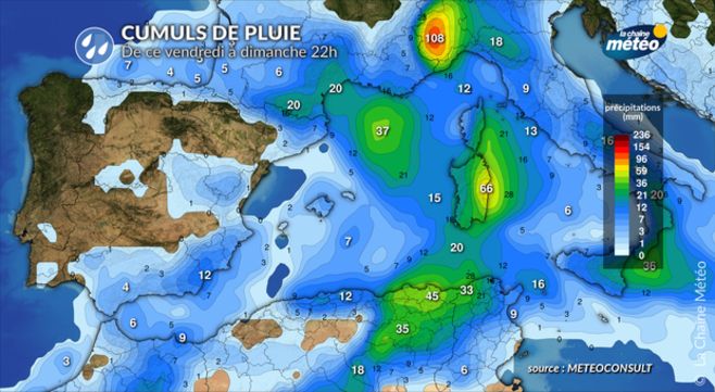 Cumuls de pluie sur les pays méditerranéens © La Chaîne Météo