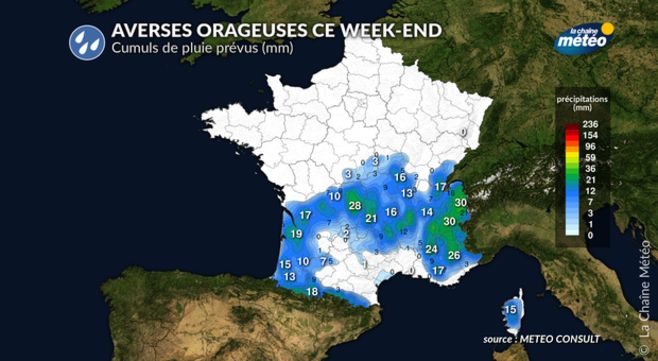 Cumuls de pluie ce week-end © La Chaîne Météo