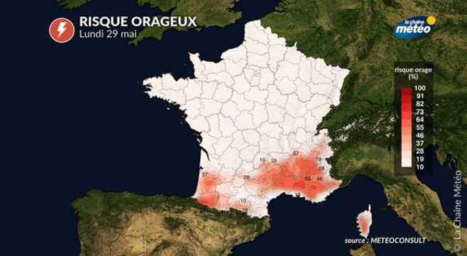 - maintien du risque orageux des Pyrénées aux Alpes l'après-midi