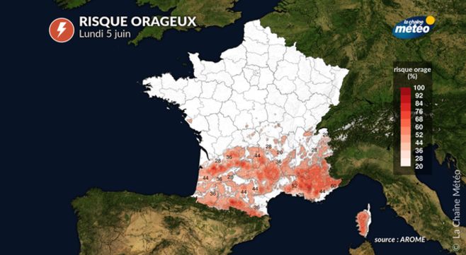 - maintien du risque orageux des Pyrénées aux Alpes l'après-midi