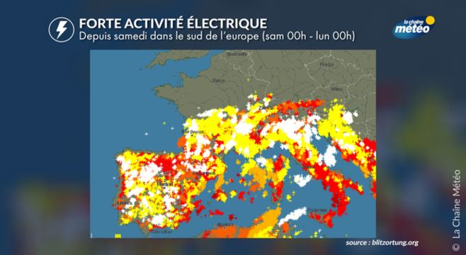 Les orages étaient encore forts dans le sud-est ce lundi, mais ils perdent en intensité ce mardi au sud-est, mais restent cependant plus actifs au sud-ouest.
