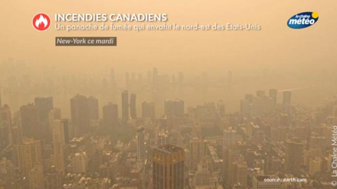 Ce mardi, le nord-est des Etats-unis et New-York ont été plongés sous une épaisse fumée rendant le ciel brunâtre et orangé avec des visibilités nettement réduites. La qualité de l'air s'en trouve fortement dégradée, en lien avec une importante concentration en particules fines. New-York est même devenue en l'espace de quelques heures la mégalopole la plus polluée au monde, devant New Dehli ou N'Djamena.