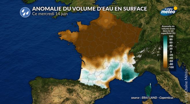 Anomalie de teneur en eau en surface © La Chaîne Météo