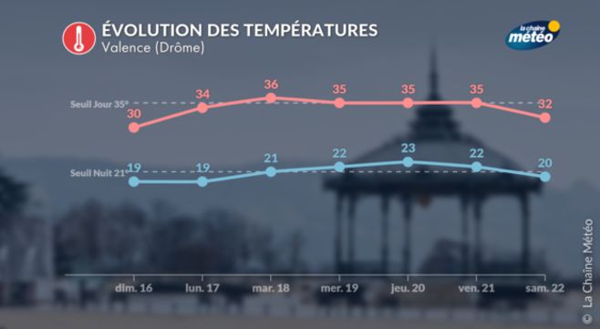 Si mercredi, la chaleur commence à décliner de Midi-Pyrénées à Rhône-Alpes, ce ne sera pas le cas des régions méditerranéennes situées sous l'influence de cette masse d'air saharienne toute la semaine prochaine. Les seuils de canicule seront atteints plusieurs jours sur Montélimar, Valence ou bien Carpentras ainsi que sur Marseille, Nîmes, Toulon, Nice, Bastia ou bien Ajaccio.