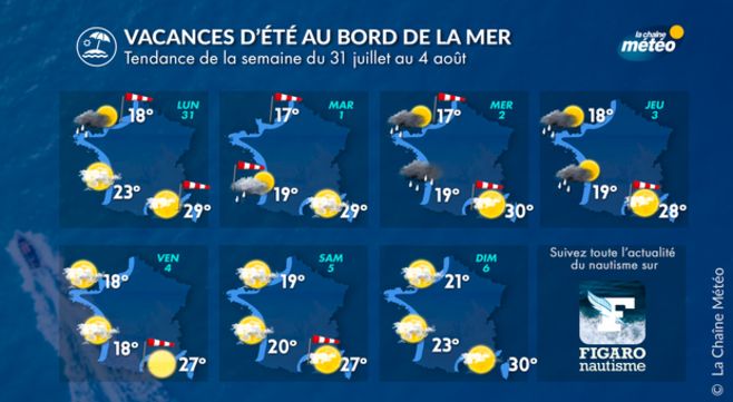 Si vous faites partie des vacanciers de bord de mer, et que vous faites du bateau, qu'il soit à voile où à moteur, vous pouvez consulter toutes nos prévisions marine sur notre site marine.meteoconsult.fr. Et, sur le sable ou le pont de votre navire, profitez également de toute l'actualité du nautisme via notre site Figaro Nautisme.