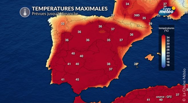 Ces valeurs extrêmes ne seront plus atteintes ce week-end, ce qui n'empêchera pas d'atteindre et de dépasser la barre des 40°C en Andalousie, au sud du pays, ce qui est plus habituel. Mais la région de Valence renouera avec des valeurs proches de 30 à 33°C.