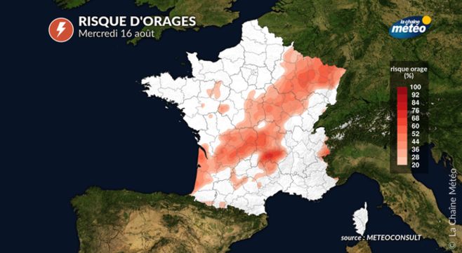 Ce mercredi 16 août, la chaleur reste d'actualité. Elle s'accentue par endroit et gagne davantage de régions. L'activité orageuse commence à décliner.
