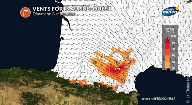 En Occitanie, il faut encore compter sur le vent d'autan, qui souffle fort dans une ambiance ensoleillée et surtout bien chaude.