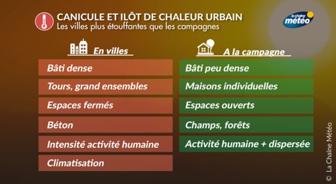 Les différences entre l'ilot de chaleur et la campagne © La Chaîne Météo