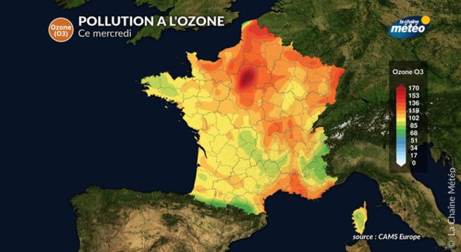 Pollution à l'ozone ce mercredi © La Chaîne Météo