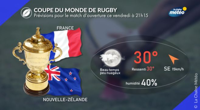 Coupe du Monde de Rugby : la météo du match France Nouvelle-Zélande © La Chaîne Météo