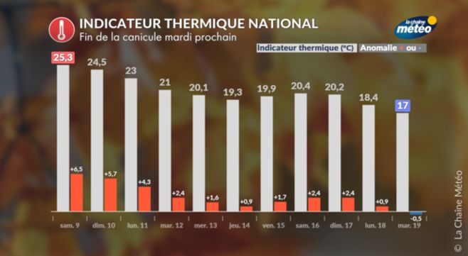 Indicateur thermique : fin de la canicule mardi prochain © La Chaîne Météo