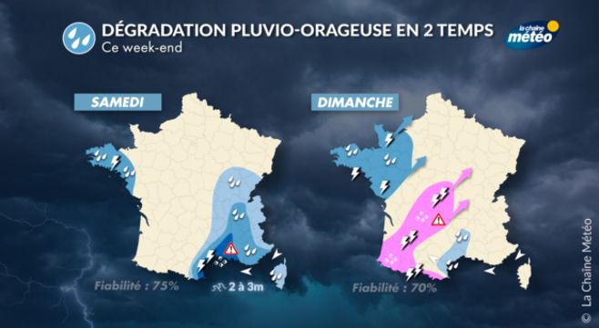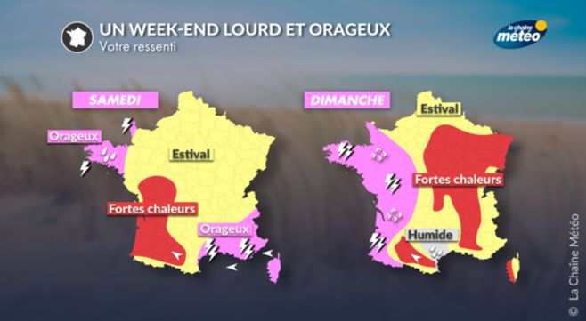 Pour votre week-end, la chaleur sera bien présente mais le temps tournera à l'orage. La dégradation concernera d'abord le sud-est samedi, puis l'arc atlantique dimanche avec l'arrivée de forts orages.