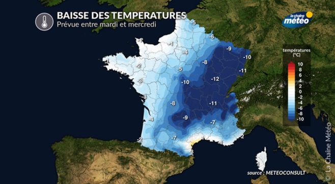 Baisse des températures prévue entre mardi et mercredi © La Chaîne Météo
