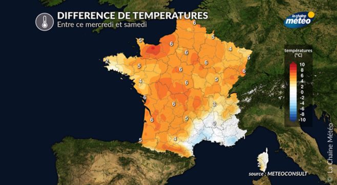 Différence de températures entre mercredi et samedi © La Chaîne Météo