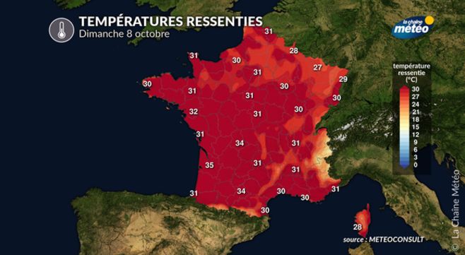 Ce dimanche 8 octobre ressemble à la journée de samedi, avec du plein soleil pour tous et une chaleur généralisée. Une journée parfaite pour profiter des balades, randonnées, ou si vous êtes en bord de mer, bronzer ou nager.