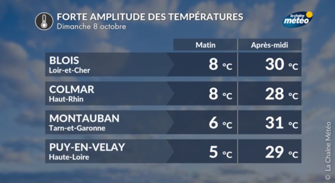 Météo dimanche 8 octobre : l'été bat son plein, jusqu'à 33°C l'après-midi !