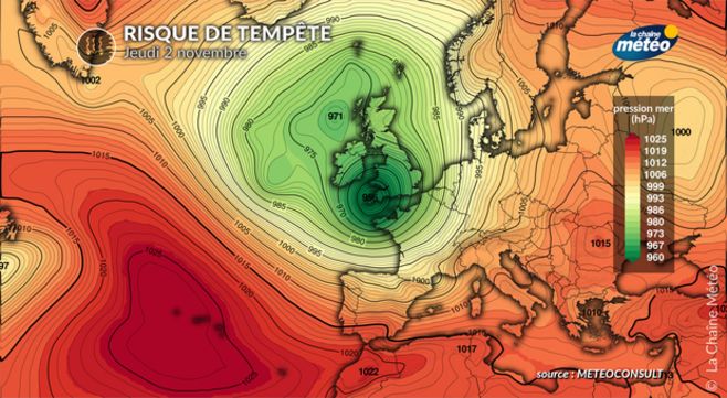 En effet, jeudi, le courant-jet (vent d'ouest soufflant en altitude) va se situer au-dessus de la France. Ce courant-jet est synonyme de conditions fortement dépressionnaire, ce qui sera le cas. Il accentue le dynamisme des perturbations atlantiques et le creusement rapide de dépressions, accroissant les risques de formations de tempêtes.
