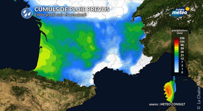 Cumuls de pluie attendus de jeudi soir à vendredi © La Chaîne Météo
