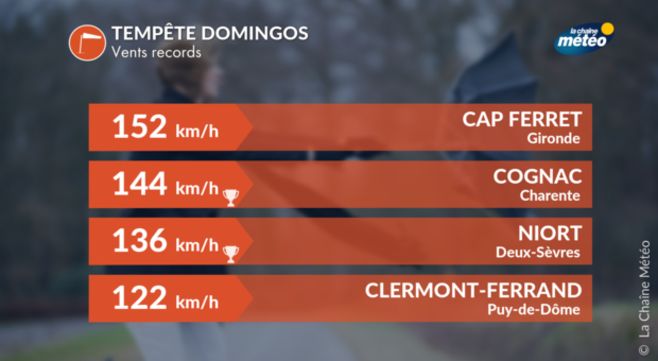 Domingos : une tempête remarquable, jusqu'à 152 km/h en Gironde